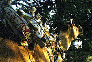 pulled by a camel. The tourists carts are done up in velvets and cushions, mine was a local cart